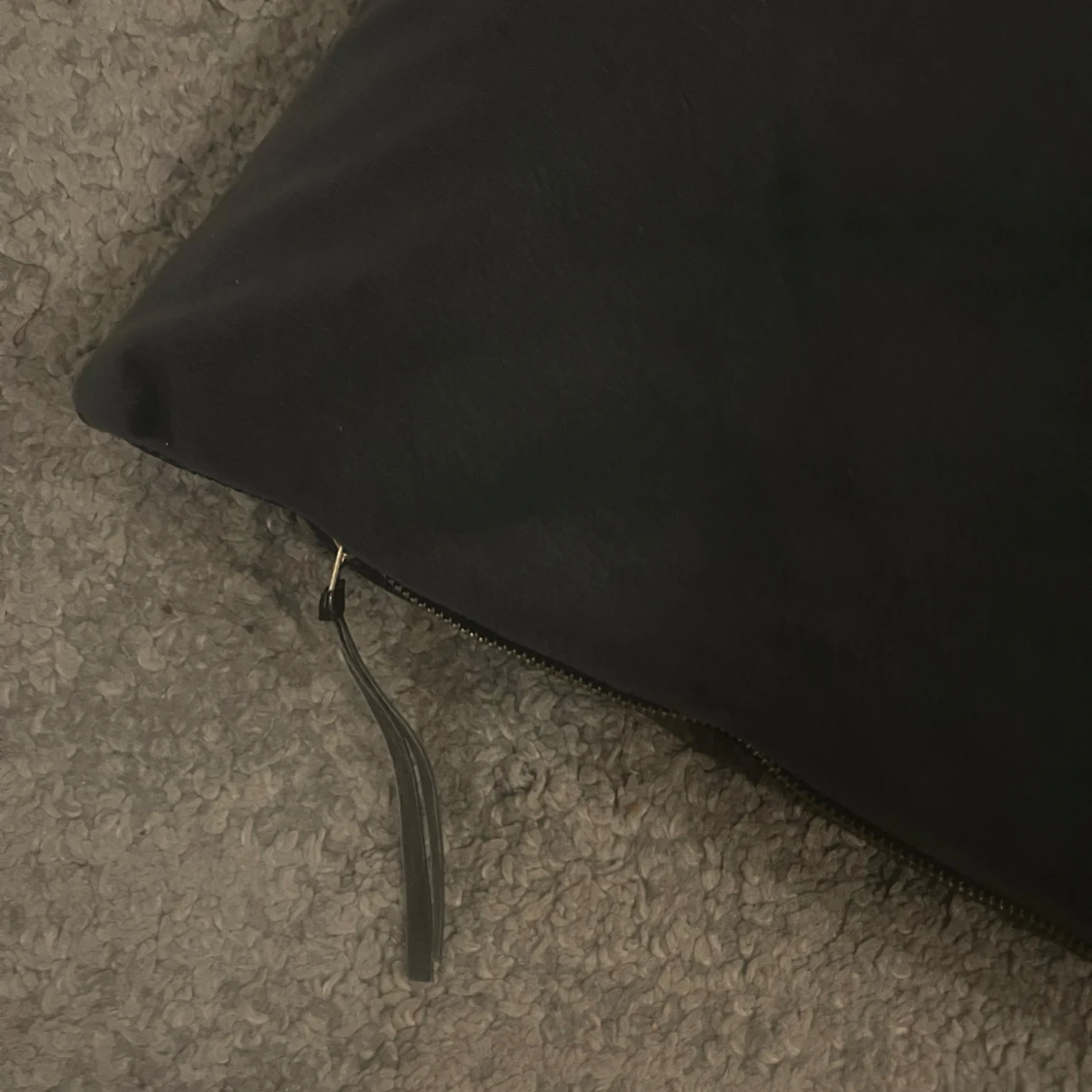 Jättesöt mörkgrå prydnadskudde som är mönstrad på ena sidan och lent och har mjukt tyg på andra sidan. Finns en dragkedja så är möjligt att ta av kuddfodfalet och tvätta! Mått: 50x35. Använd gärna köp nu💕