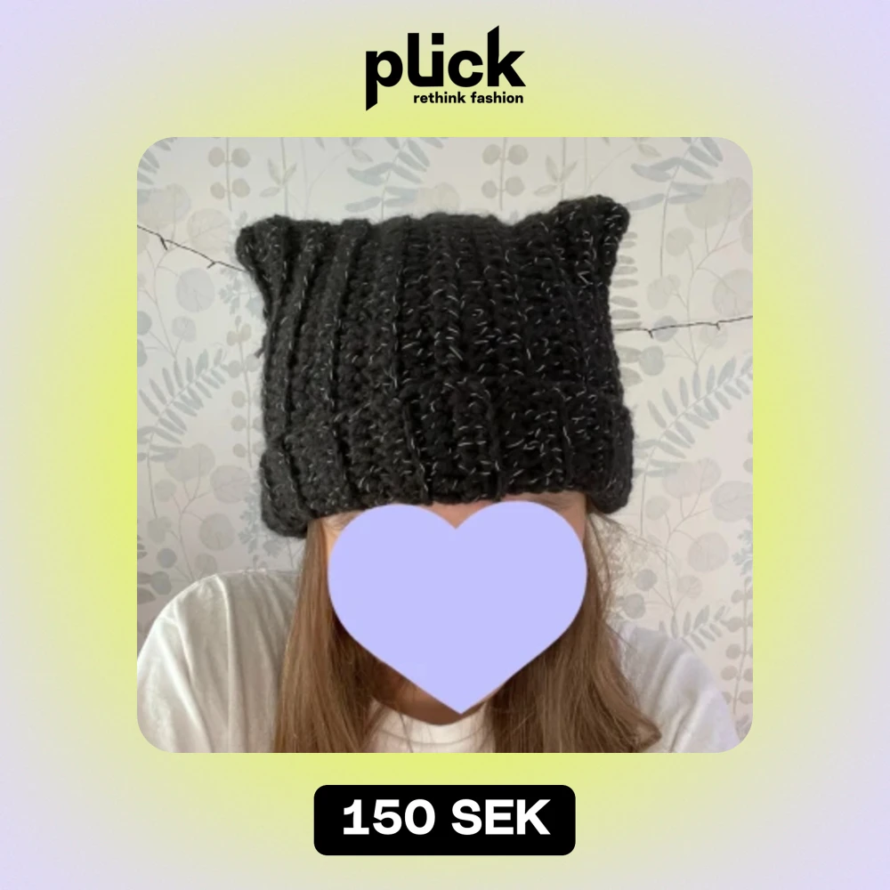 Virkad svart kattmössa gjort med reflexgarn, se bild 3💛. Perfekt nu inför höst och vinter! Den är även stretchig så kan passa nån storlek upp och ner!