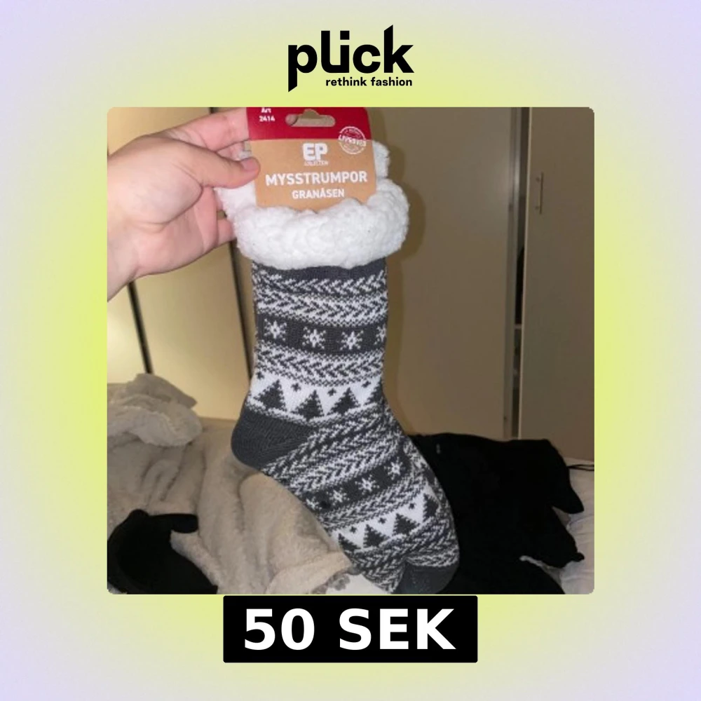 Supergosiga mysstrumpor från EP Collection Granåsen med fluffig vit insida och grått/vitt vintermönster. Perfekta för kalla dagar, med snyggt mönster av granar och snöflingor. Strumporna är tjocka och har en mjuk frottéliknande insida för extra värme.