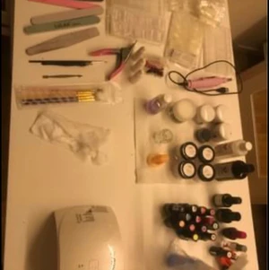 Ett helt nagelkit för akrylnaglar. ⭕️Säljer allt tillsammans ingenting separat⭕️ Detta ingår: •Semilac uv lampa •elfil med olika storlekar •slimmad bordslampa (behöver ev monteras snart byta ledlampa) •utsug med en påse •4 akrylpulver från NAGELGIGANTEN i färgerna clear, white, cover pink, och pink alla 23 g fyllda •4 andra akrylpulver i clear, pink och white 3 innehåller 23 g OANVÄNDA •svart akrylpulver från Silcare 4 g •odorless akrylvätska från nagelgiganten helt ny •akrylvätska med mangolukt 50 Ml lite under hälften kvar •15 gellack/hybrid från silcare •2 primer •top base gel nagelgiganten •base gel silcare •dekoration små frukter • 3 st lim 3g styck lite använda •1 nagelklippare rosa •10-13 nageltipp paket med olika tippar (genomskinliga, vita m.m.) •visningstippar •nagelfil och buff •akrylborstw rengörare lite använd men mer än hälften kvar •2 lådor att ha grejerna i (syns ej på bild) •nail cleaner lite använd •nail cleaner blå helt ny •akrylvätska behållare liten •nagelbandsolja strawberry ny •träningsfinger ALLT SÄLJES TILLSAMMANS FÖR 2500kr. Först till kvarn Allt du behöver för att göra naglar