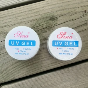 2 st UV nagelgel. 1 rosa & 1 genomskinlig (clear). Den rosa är öppnad men oanvänd och den genomskinliga är inte ens öppnad. Köpare står för frakt!