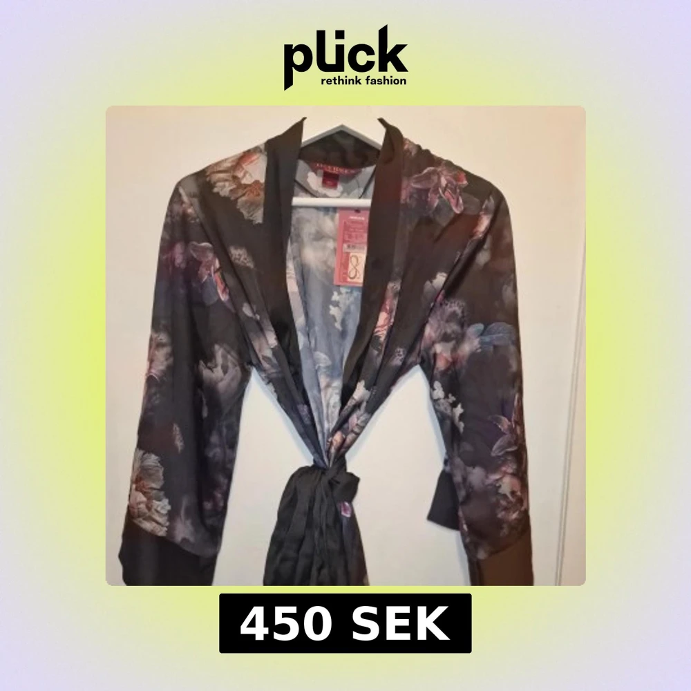 Sensuell kimono från Hunkemöller x Lucy Hale i siden. Den har mörka toner med rosa och vita blommor. Perfekt för en elegant och avslappnad look som inte säljes längre. Dyr i inköp. Garderobsrensning så kika gärna på övriga auktioner.
