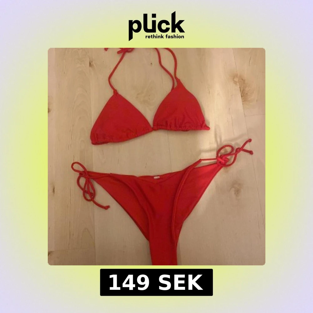 Snygg röd bikini med trekantsöverdel och knytband både i nacken och ryggen. Underdelen har knytband på sidorna för justerbar passform. Perfekt för soliga dagar på stranden!💗💗