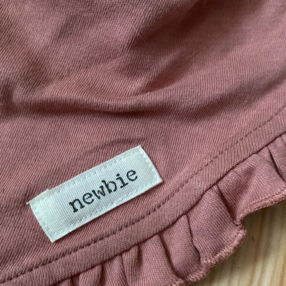 Säljer en superfin rosa haklapp från Newbie. Den har söta volangdetaljer längs kanterna och är gjord i ett mjukt material. Perfekt för att hålla kläderna rena under måltiderna. Den har tryckknappar för enkel justering och på- och avtagning. Perfekt för små fashionistas! 💖
