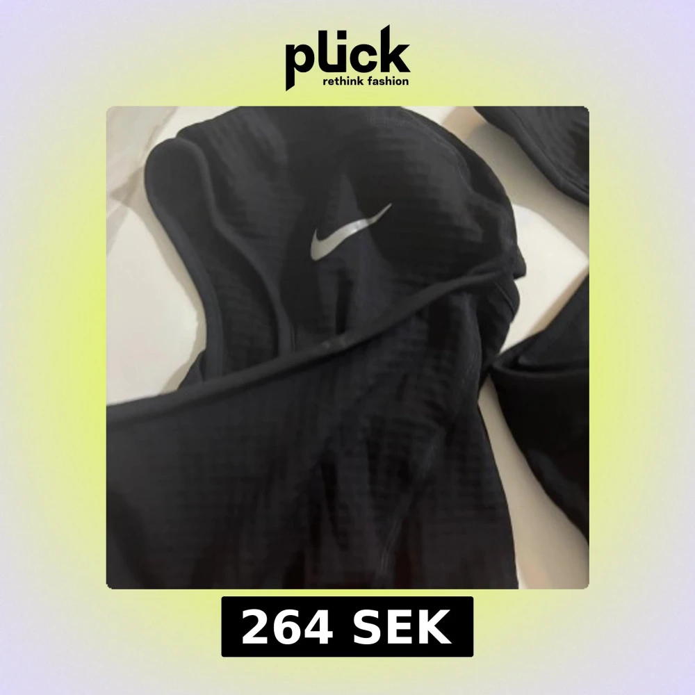 Snygg svart bikini från Nike med klassisk silvrig swoosh-logga på toppen. Modellen har sportig design och är tillverkad i mjukt syntetmaterial som torkar snabbt. Perfekt för dig som gillar att hänga vid poolen eller stranden och vill ha en stilren look.