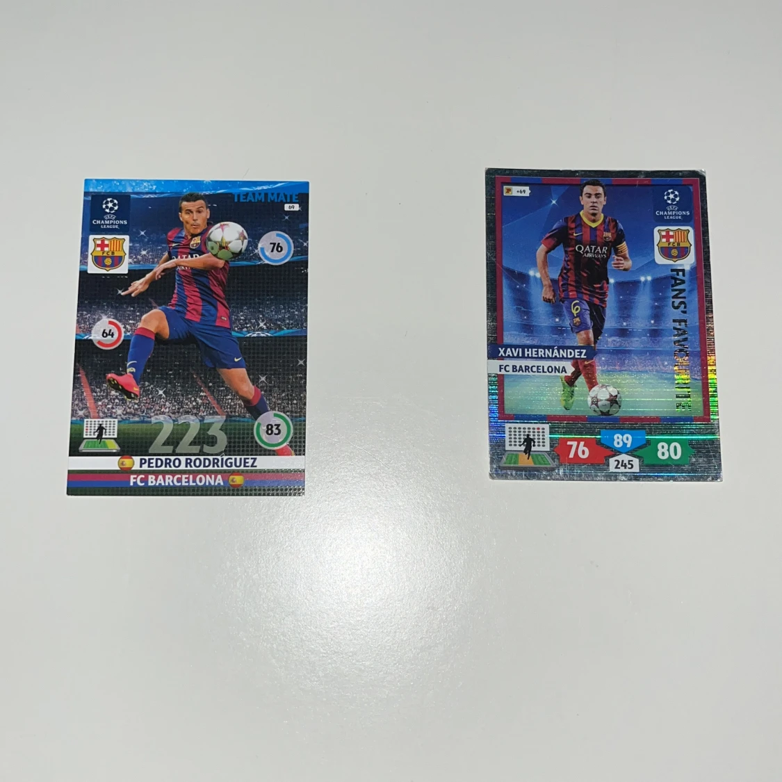 Två coola samlarkort med FC Barcelona-stjärnorna Pedro Rodriguez och Xavi Hernandez från Champions League. Perfekt för dig som älskar fotboll och vill boosta din samling med legendariska spelare. Snygg design och stats på varje kort! Få den här fina Barca duon för endas 165kr