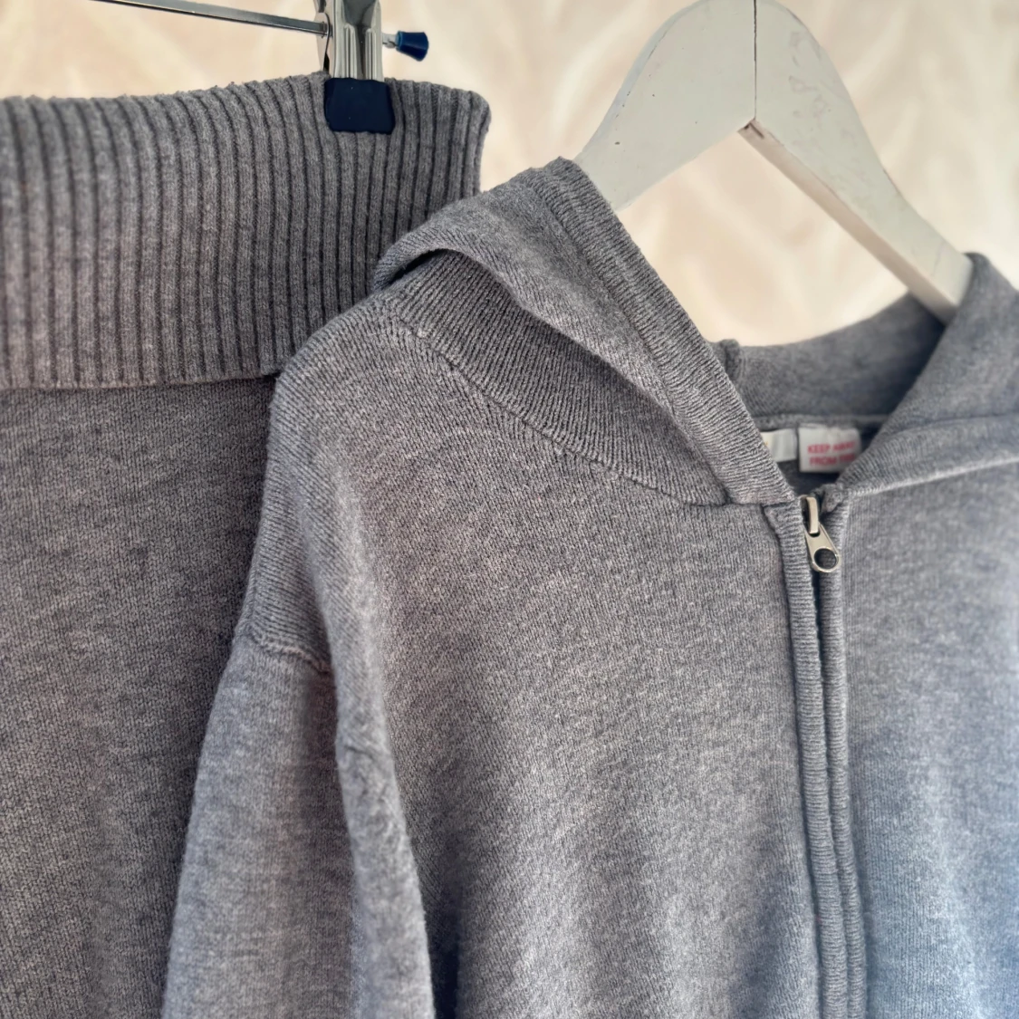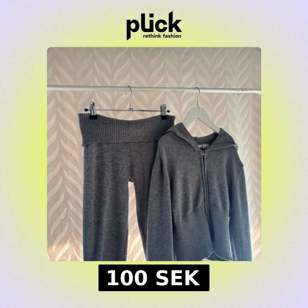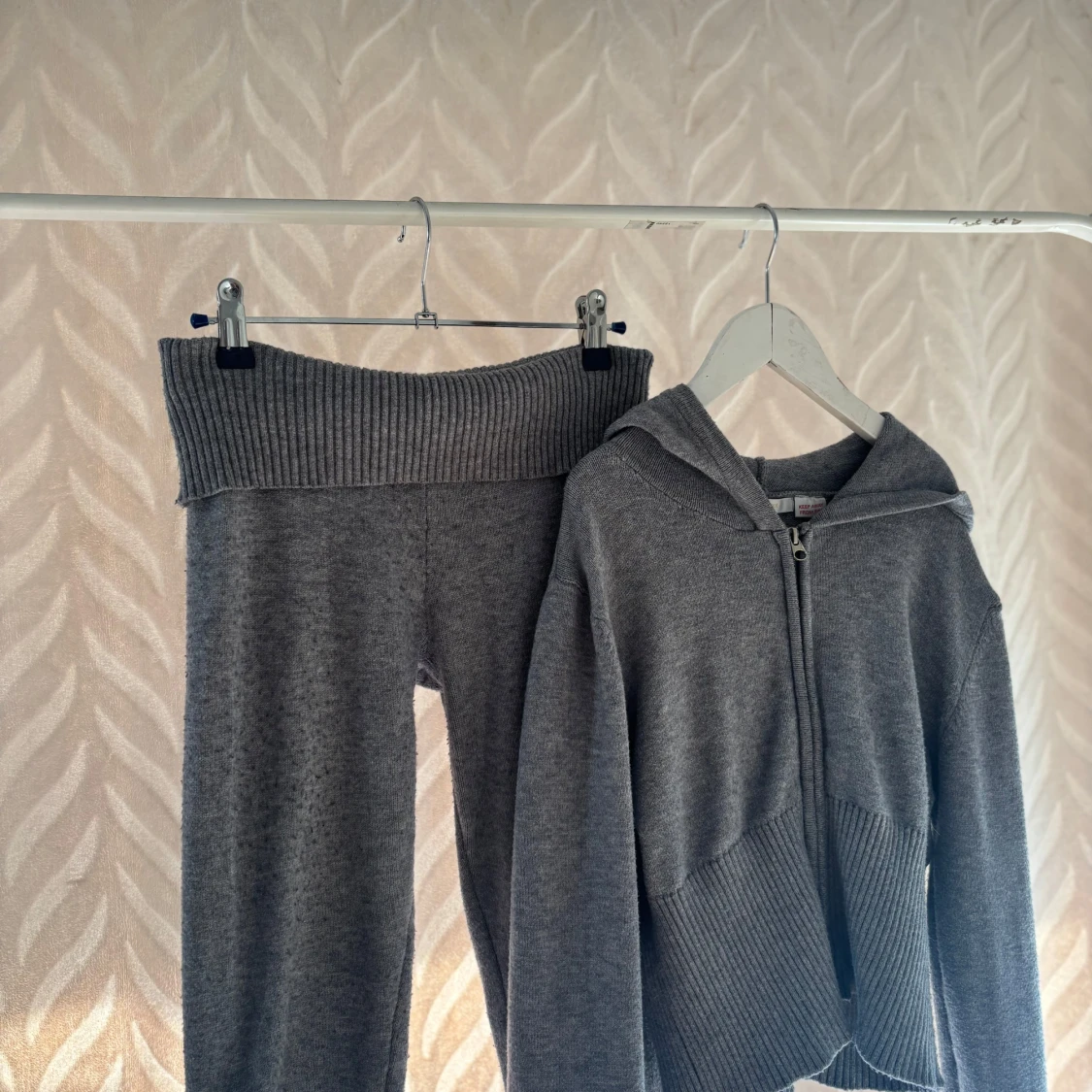 Gulligt grått mysigt ribbat mjukis sätt från Gina, byxorna är i 158/164 & tröjan är i 170