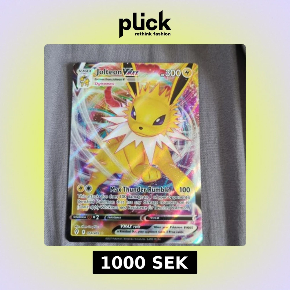 Två glittrande Pokémon VMAX-kort: Jolteon VMAX och Shadow Rider Calyrex VMAX! Perfekt för dig som älskar samlarkort, coola illustrationer och att spela Pokémon TCG. Korten har unika attacker och färgstark design som gör din samling extra episk. De kostar ca 3000 nya