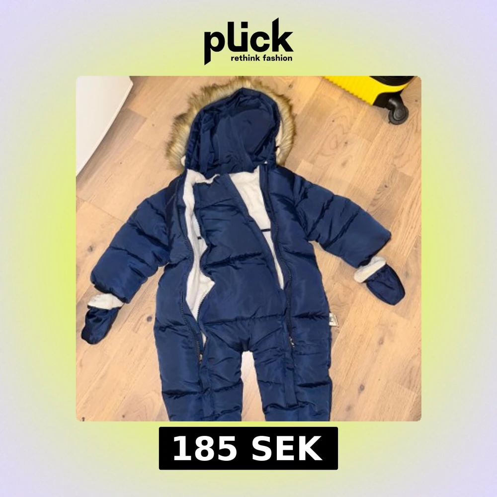 Vinteroverall i blått med luva och fuskpäls. Overallen har dragkedja framtill och muddar vid ärmar och fötter. Perfekt för kyliga tider för att hålla 👶🏻 varm om vintern 🎁 nypris 499