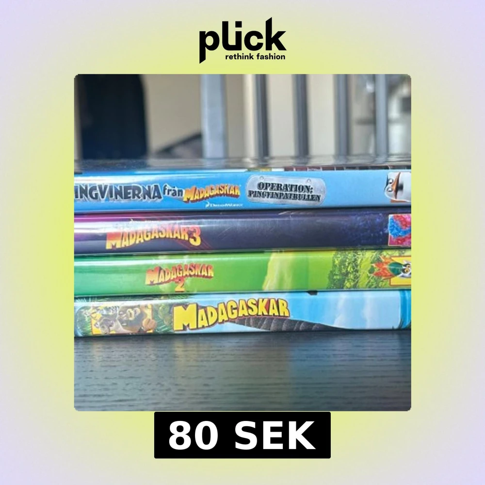 Samling med Madagaskar filmer: - Madagaskar Språk: Engelska, Danska, Norska. - Madagaskar 2 Språk: Svenska, Engelska, Finska. - Madagaskar 3 Språk: Svenska, Engelska, Finska. - Pingvinerna från Madagaskar: Operation Pingvinpatrullen Språk: Svenska, Danska, Norska, Finska OBS!! skivorna är begagnade så det kan förekomma repor/hairlines på skivorna, men då jag kollar igenom alla filmer jag säljer garanterar jag att alla funkar felfritt om inget annat står! :)