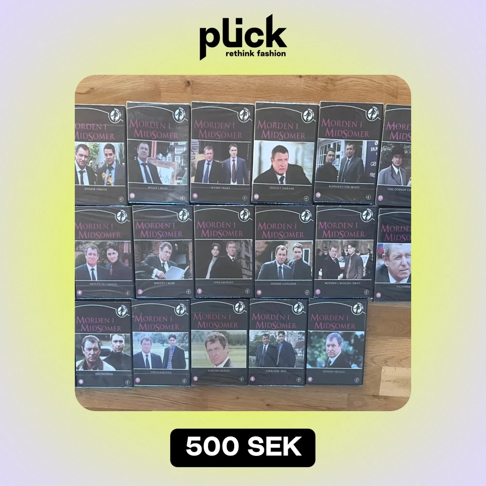 Säljer en samling av DVD-boxar från serien Morden i Midsomer. Boxarna har olika omslag med bilder från serien och titeln i röd text. Perfekt för den som älskar brittiska kriminalserier och vill ha en komplett samling hemma. Alla skivor är i bra skick och redo för en maratonkväll! Alla är med plast på och oanvända kostar 99 kr styck i butik men jag har billigare ni kan välja några enstaka