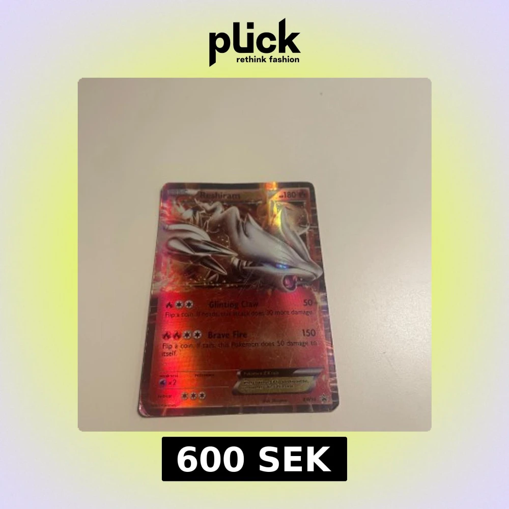 Coolt och glittrande Pokémonkort med Reshiram! Perfekt för samlare och fans av Pokémon. Kortet har snygg design och är en EX-version med kraftfulla attacker. Ett måste för dig som vill imponera på vännerna eller utöka din samling.
