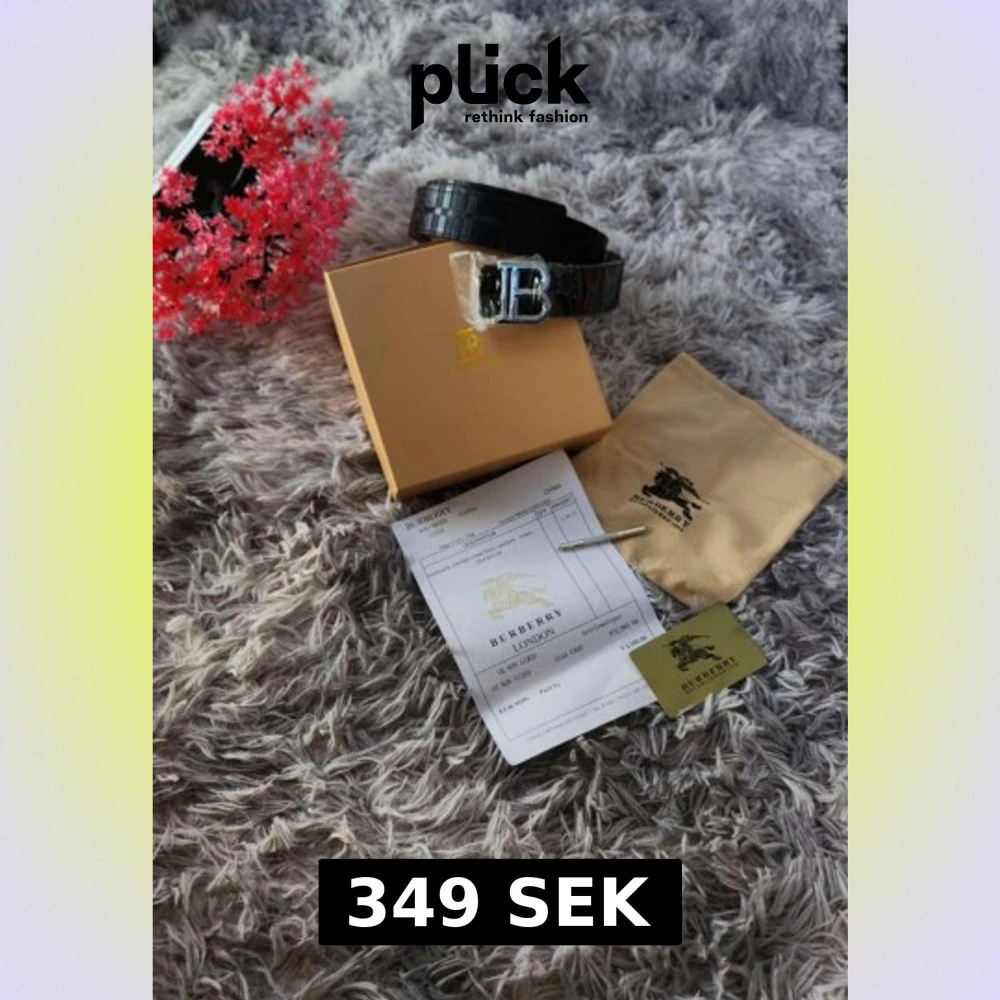 Säljer ett bälte i skinn med klassiskt rutigt mönster. Ena sidan är svart med diskreta rutor och den andra är beige med Burberrys ikoniska rutor i rött, svart och vitt. Snyggt B-spänne i silver. Kommer med originalbox, dustbag och certifikat.