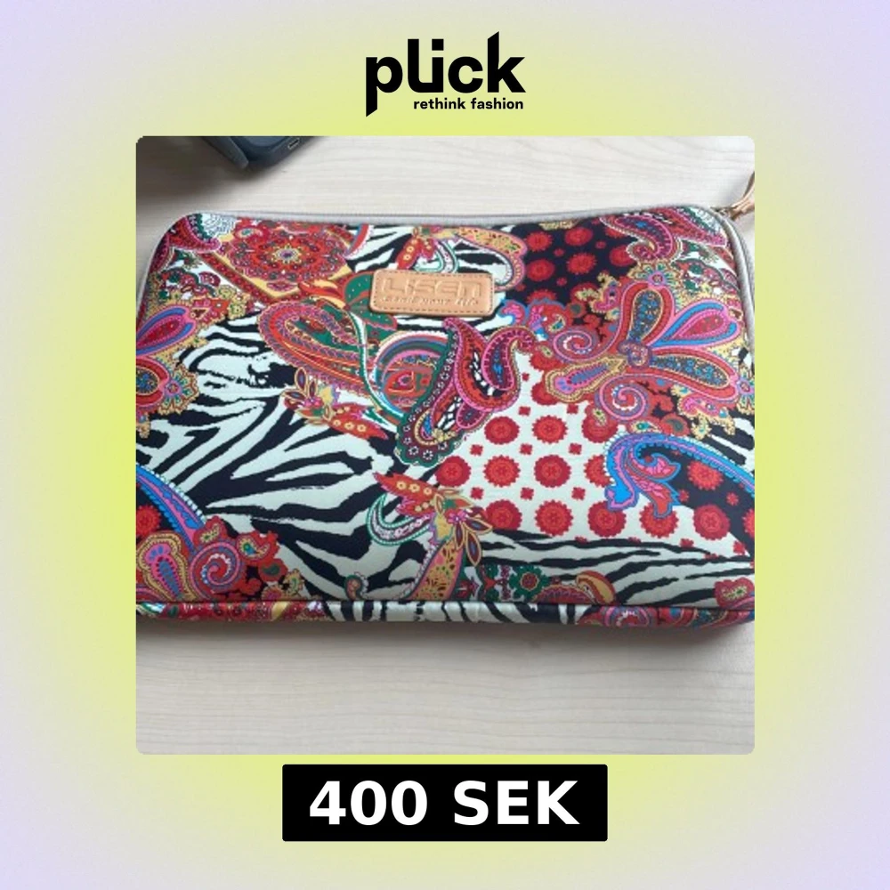 Säljer en datorväska från LISAM med färgstarkt paisleymönster, röda blommor och zebraränder. Väskan har dragkedja och är perfekt för att bära din laptop med stil. Materialet känns som syntet och väskan har en smidig form. Nypris 600kr jag säljer den för 400kr.