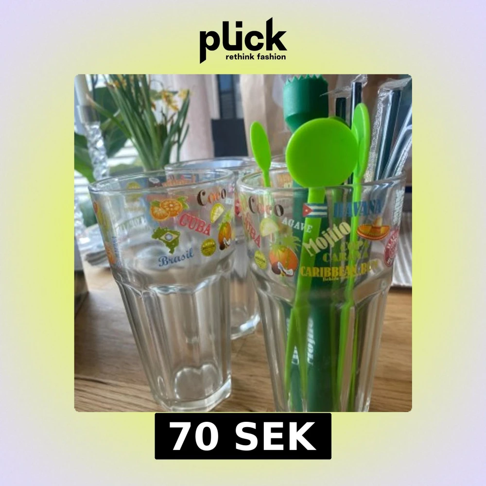 4 st Mojito glad men tillhörande sugrör samt en pressare för myntan. Aldrig använda!