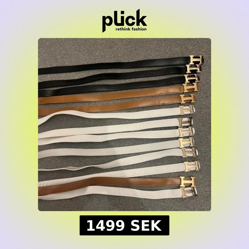 Säljer flera bälten i skinn med ikoniskt H-spänne i guld eller silver. Finns i svart, brunt och vitt. Klassisk och stilren design som lyfter vilken outfit som helst. Perfekt accessoar för dig som gillar lyxiga detaljer och tidlös stil.