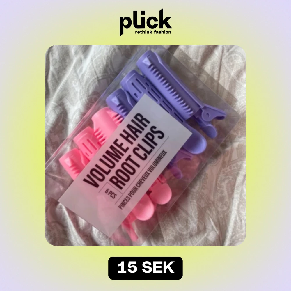6-pack med klämmor som ska ge volym till håret. Förpackningen är bruten och 2 klämmor har används 1 gång - därefter sköljts av. De visar inget tecken på användning