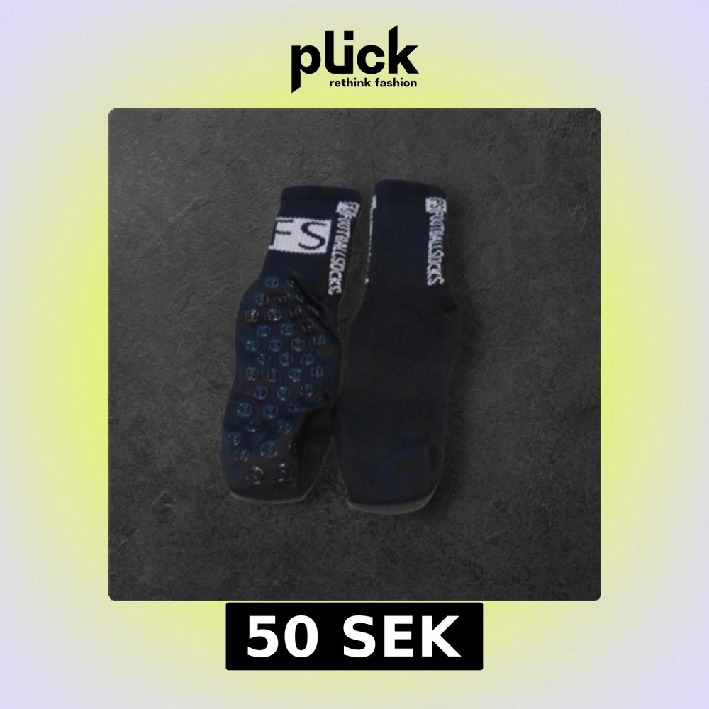Svarta sportstrumpor från FootballSocks med vita detaljer och logga upptill. Undersidan har gummigrepp för extra fäste, perfekt för fotboll eller annan träning. Strumporna är höga och sitter tajt runt vristen för bästa komfort.