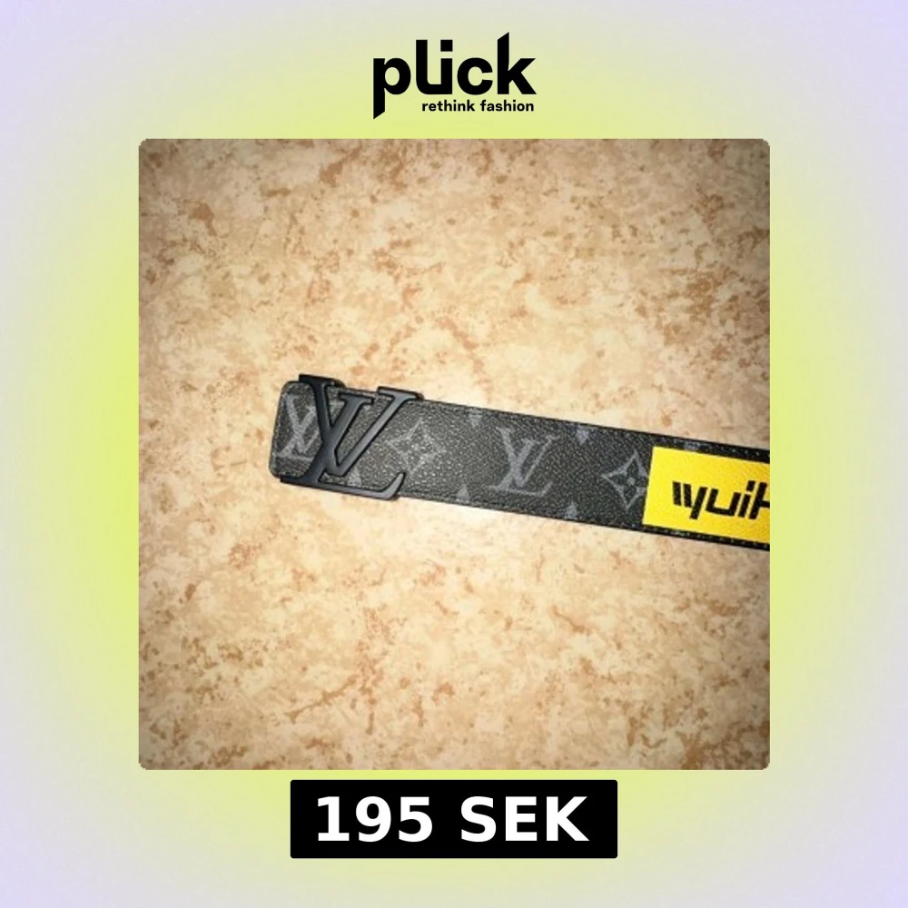 Svart bälte från med ikoniskt -spänne i matt svart metall. Bältet har ett mönstrat tryck med -loggor och färgglada grafiska detaljer, samt en gul patch med text. Insidan är beige med vit söm. Perfekt för dig som vill sticka ut med designeraccessoar.