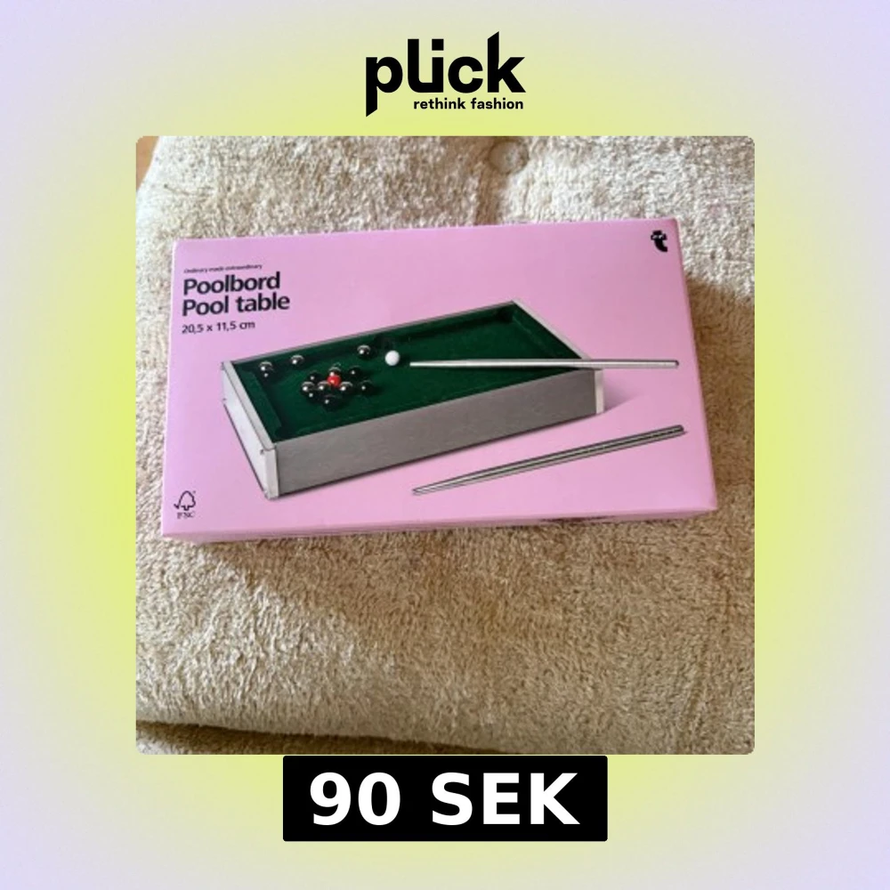 Säljer ett mini poolbord. Bordet är ca 20,5 x 11,5 cm och kommer med biljardbollar, två köer och en triangel. Perfekt för att spela biljard i miniformat hemma eller på resan. Oanvänd
