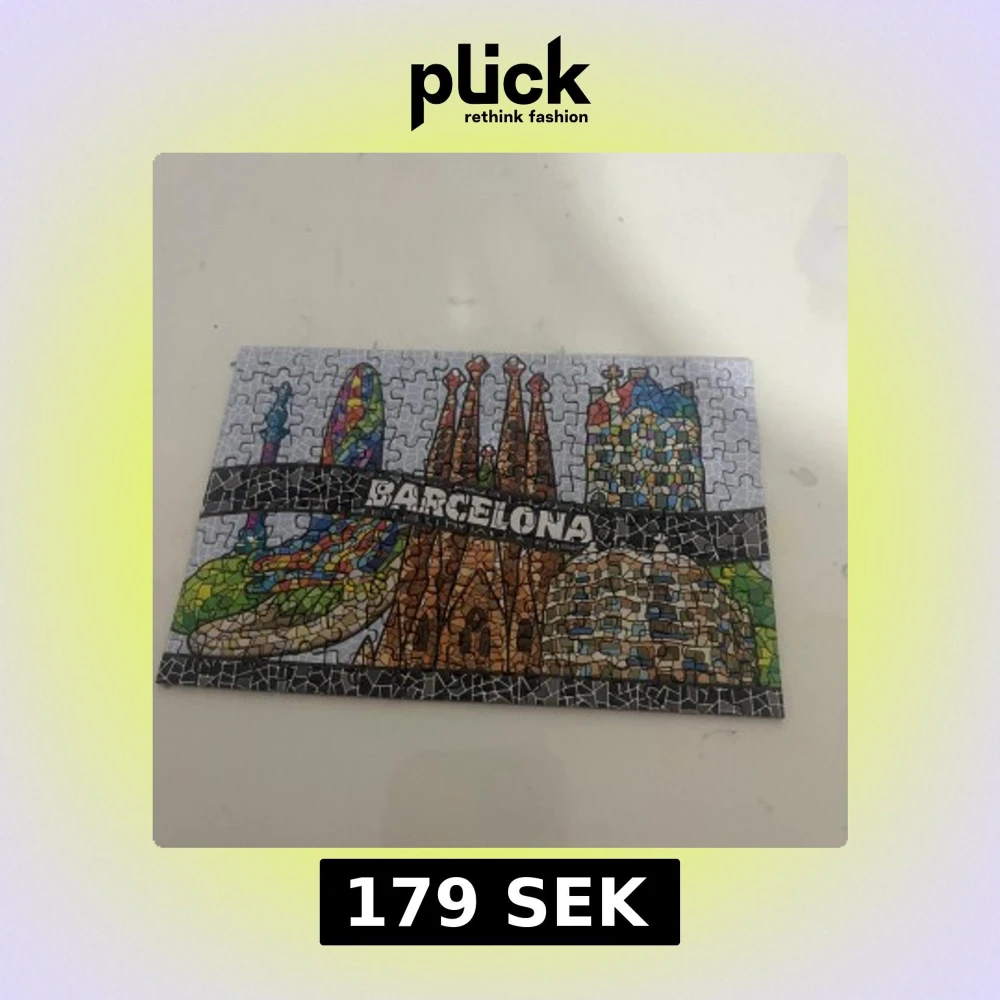 Färgglad pussel med motiv av Barcelonas ikoniska byggnader, inklusive Sagrada Familia. Alla bitar verkar vara med och pusslet är färdiglagt, i mycket gott skick. Perfekt för pusselälskare och resenärer! Levereras i originalförpackning.