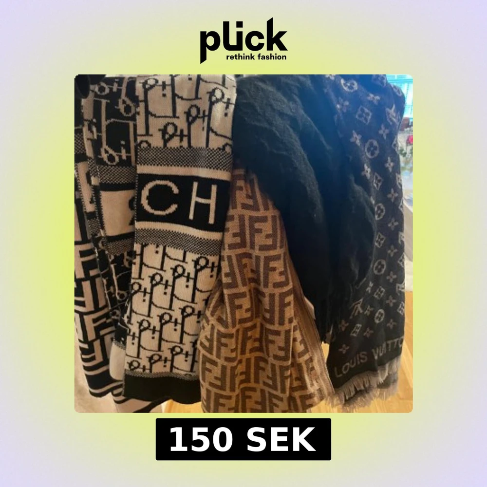 Flera lyxiga halsdukar med ikoniska logomönster från Fendi, Louis Vuitton och CH. Färgskalan går i svart, beige och brunt. Perfekta accessoarer för att lyfta din outfit med exklusiv känsla och trendig design. Fendi (vit/svarta) 200kr Fendi (beige) 150kr lv (gråa) 150kr dior (vit/svarta) 350kr