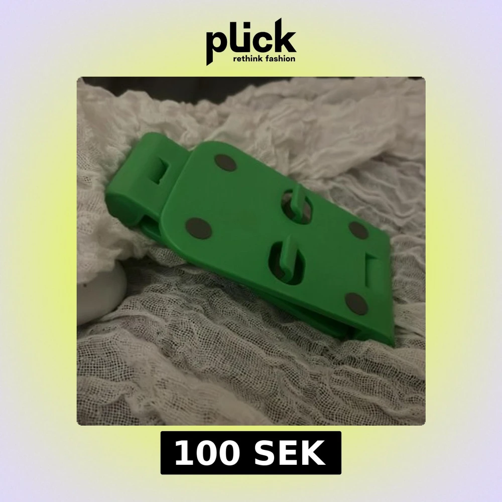 Praktisk grön mobilställ i plast, hopfällbar och justerbar för olika vinklar. Perfekt för att hålla din mobil upprätt vid videosamtal, film eller surf. Kompakt design, lätt att ta med. Inga synliga defekter eller slitage,