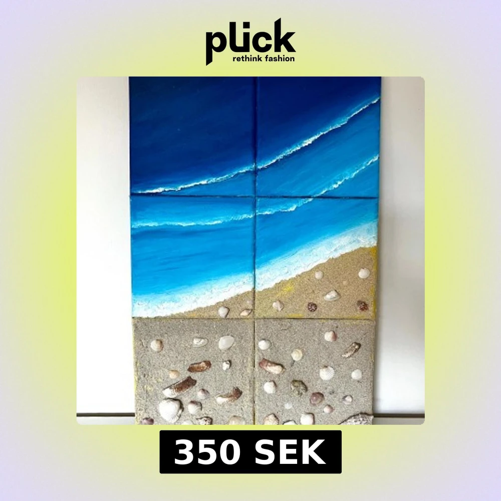 En oljemålad tavla med riktig sand och snäckor från Spanien.