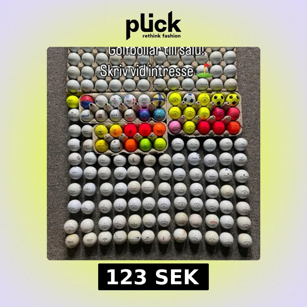 Bilderna visar ett stort antal golfbollar i olika färger och märken, sorterade i äggkartonger. Här finns både klassiska vita och färgglada bollar från märken som Callaway, Titleist, Wilson och Vice. Perfekt för dig som vill fylla på golfbagen med stil och variation!