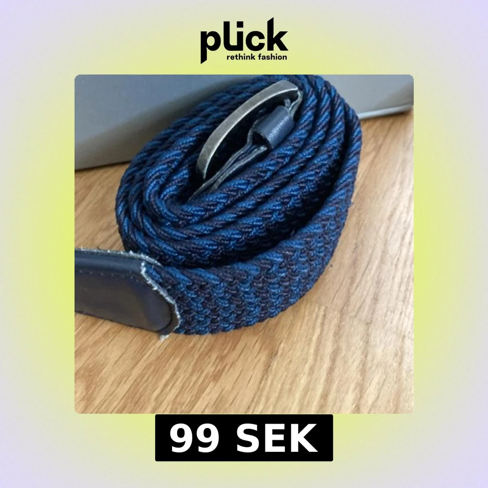 Snyggt mörkblått flätat bälte med silverfärgat metallspänne och detaljer i skinn. Perfekt accessoar för att lyfta din outfit med en sportig och stilren touch. Bältet har en flexibel, vävd design som gör det bekvämt att bära hela dagen.