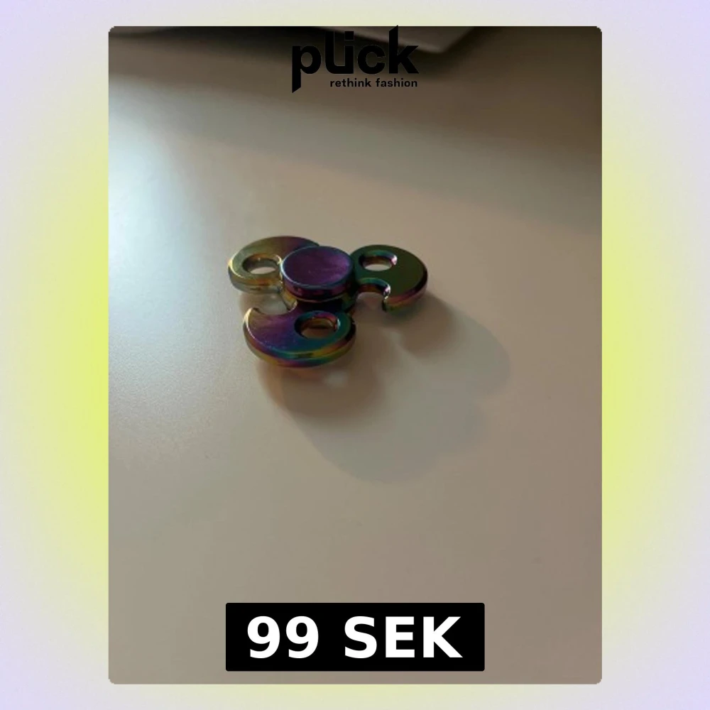 Snygg fidget spinner i metall med regnbågsfärgad finish. Trearmad design med rundade kanter och hål för extra grepp. Spinnern är i mycket gott skick utan synligt slitage. Perfekt för stresslindring eller som samlarobjekt.