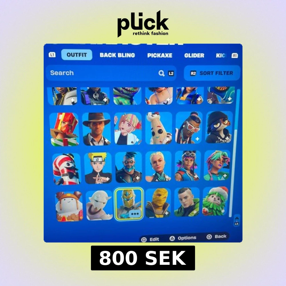 Samling av Fortnite outfits, back bling och pickaxes. Inkluderar olika karaktärer och utrustning för att anpassa din spelupplevelse. Perfekt för att skapa unika looks och strategier i spelet. Spelar det inte så mycket mer då jag inte har tid det är många rare skin och jag har en del danser också