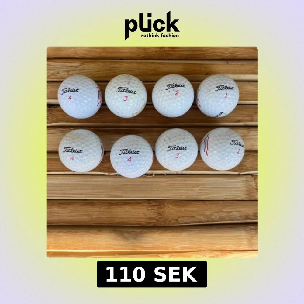 Bilderna visar ett set med begagnade Titleist truffel golfbollar, perfekta för dig som vill komma igång med golf eller behöver extra bollar till träningen. Bollarna har olika nummer och är i varierande skick, redo för nya rundor på banan.