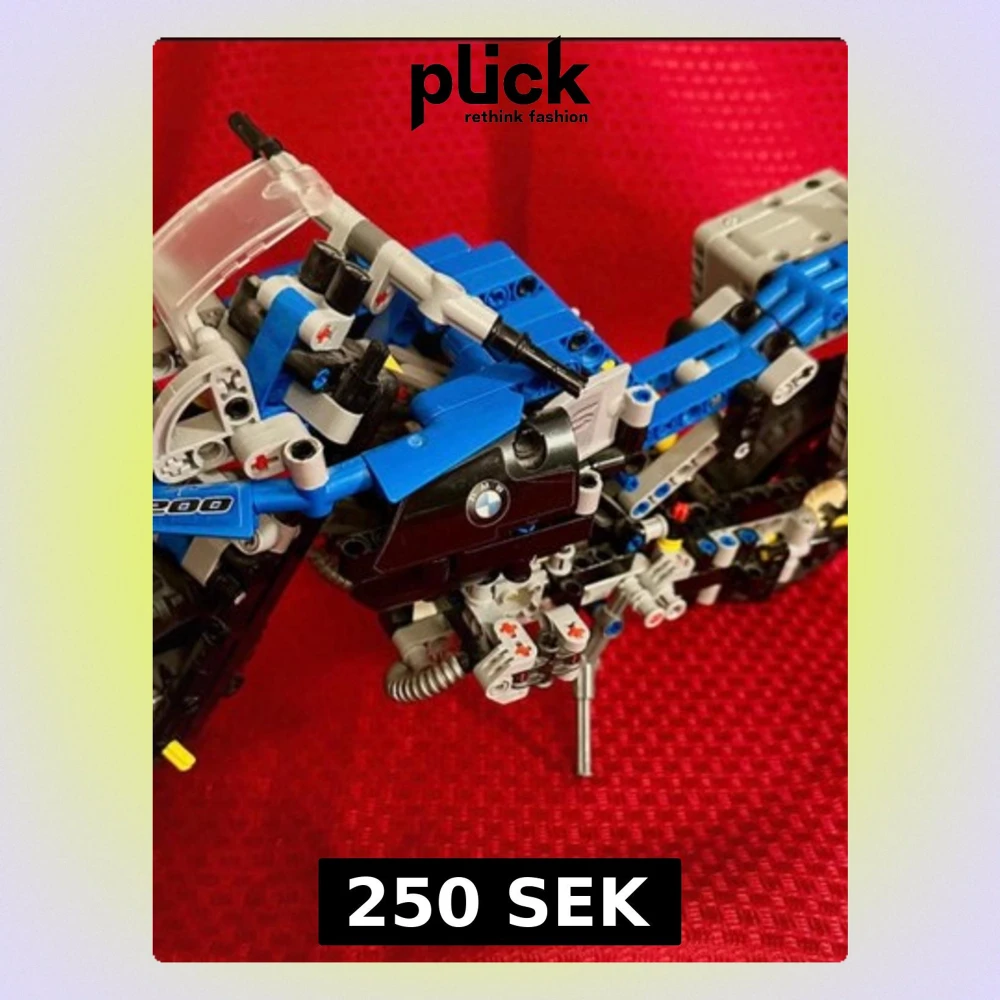 Säljer en LEGO Technic motorcykel i modellen BMW R1200. Byggsatsen har coola detaljer som genomskinlig vindruta, blå och svarta paneler, och BMW-logga på sidan. Snygg och robust design med gråa och svarta delar, perfekt för dig som gillar motorcyklar och LEGO. Lego utan förpackning och utan instruktioner.