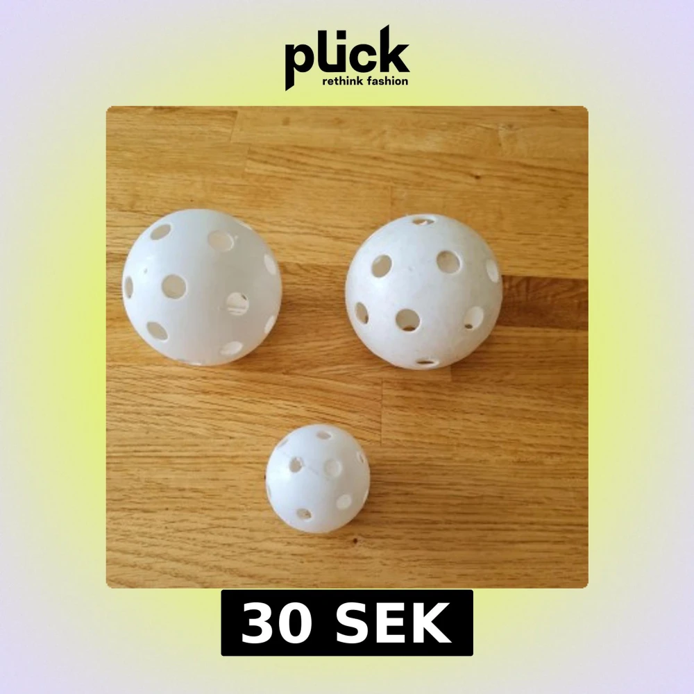 Diameter stora bollar 7 cm. En av dem har text made in Sweden. Diameter lilla boll 4 cm. Har text taiwan.