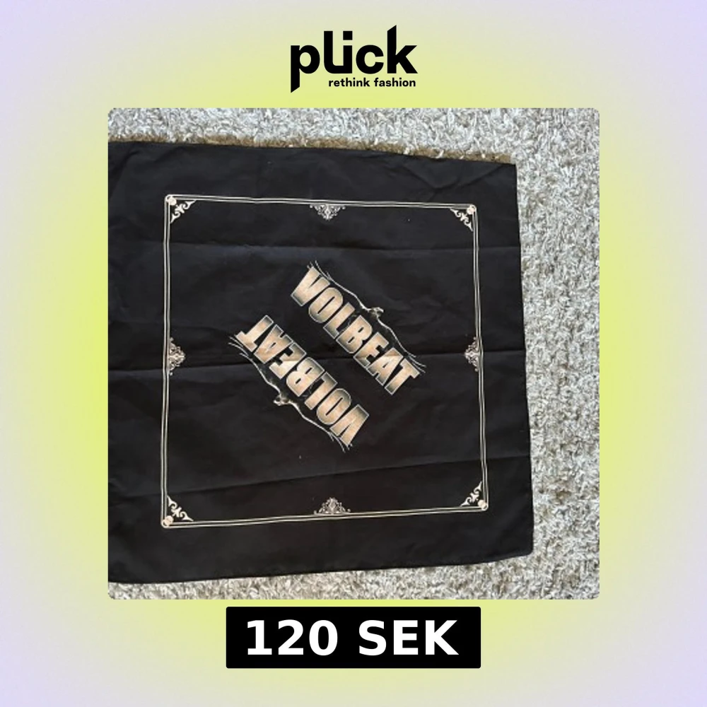 Cool svart halsduk med Volbeat-logga i mitten och dekorativa vita ramar runtom. Perfekt för fans av bandet som vill visa sitt stöd på konserter eller i vardagen. Mått 55 x 55 cm. Helt ny. Bomull