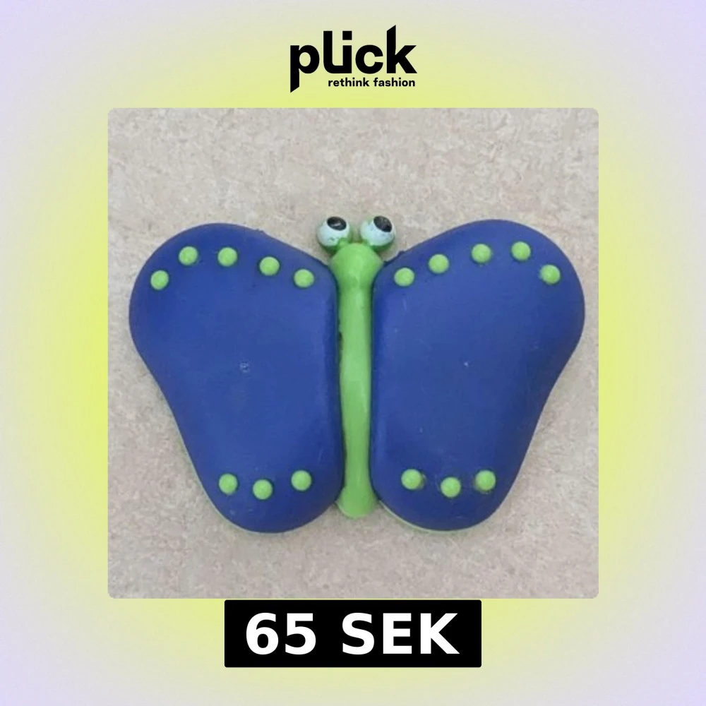 Cool magnet i form av en fjäril med blå vingar och gröna prickar samt kropp. Ögonen är vita med svarta pupiller och baksidan är helt grön. En Magnet med en färgglad och lekfull touch.