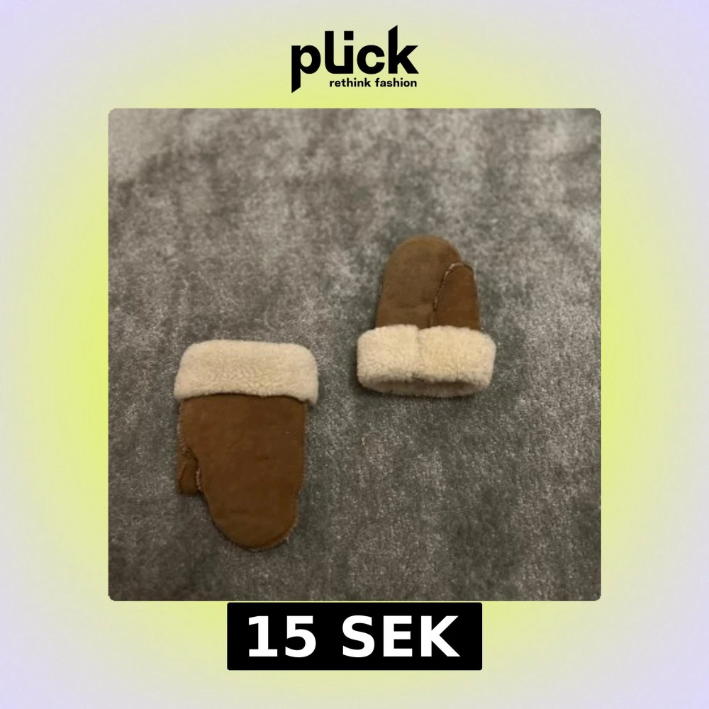 Säljer ett par bruna tumvantar i mocka med mjukt, ljust foder och breda uppvikta muddar. Perfekta för kalla dagar när du vill hålla händerna varma och mysiga. Klassisk design som funkar till det mesta. Vet ej storlek men de passar 1 åringar