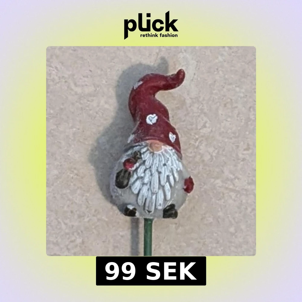 Liten tomte figur på en metall pinne. Perfekt som juldekoration eller pynt till blomkrukan.