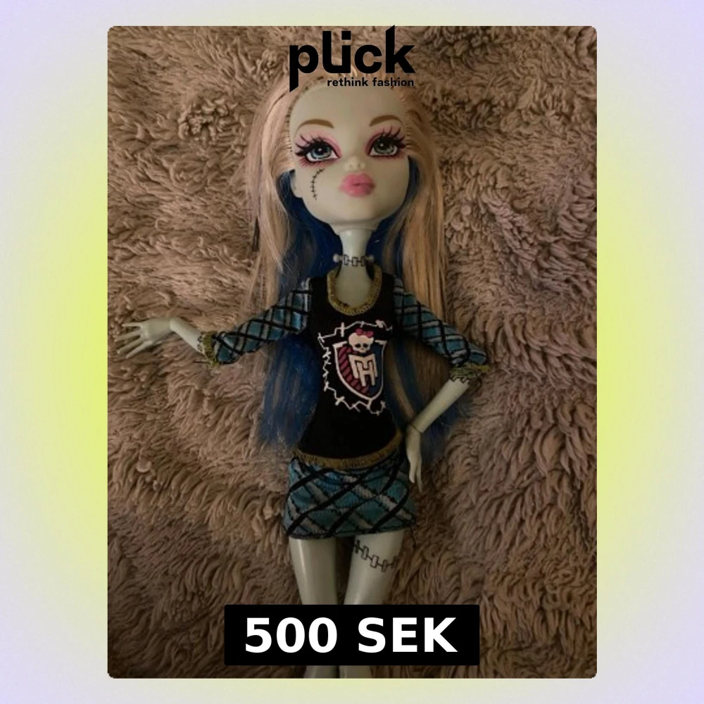 Hej, nu säljer jag min Frankie stein docka, hennes hår är lite förstörd som man ser på bilderna men annars finns de inga problem med henne🩷
