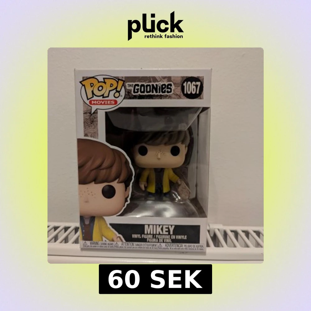 Samlingsfigur från Funko Pop! Movies-serien, The Goonies Mikey #1067. Figuren är i nyskick och levereras i originalförpackning, perfekt för samlare eller fans av filmen. Inga synliga skador på kartongen eller figuren.