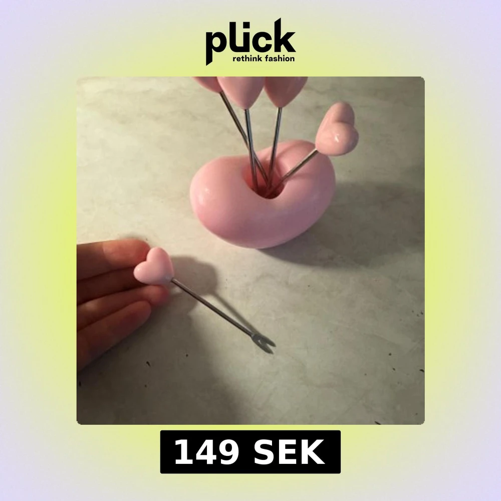 Set med två hjärtformade rosa serveringsskålar och sex fonduegafflar med hjärtformade handtag. Perfekt för fest eller mysiga middagar. Skålar och gafflar är i fint skick utan synligt slitage eller defekter. Söt design som passar alla tillfällen.