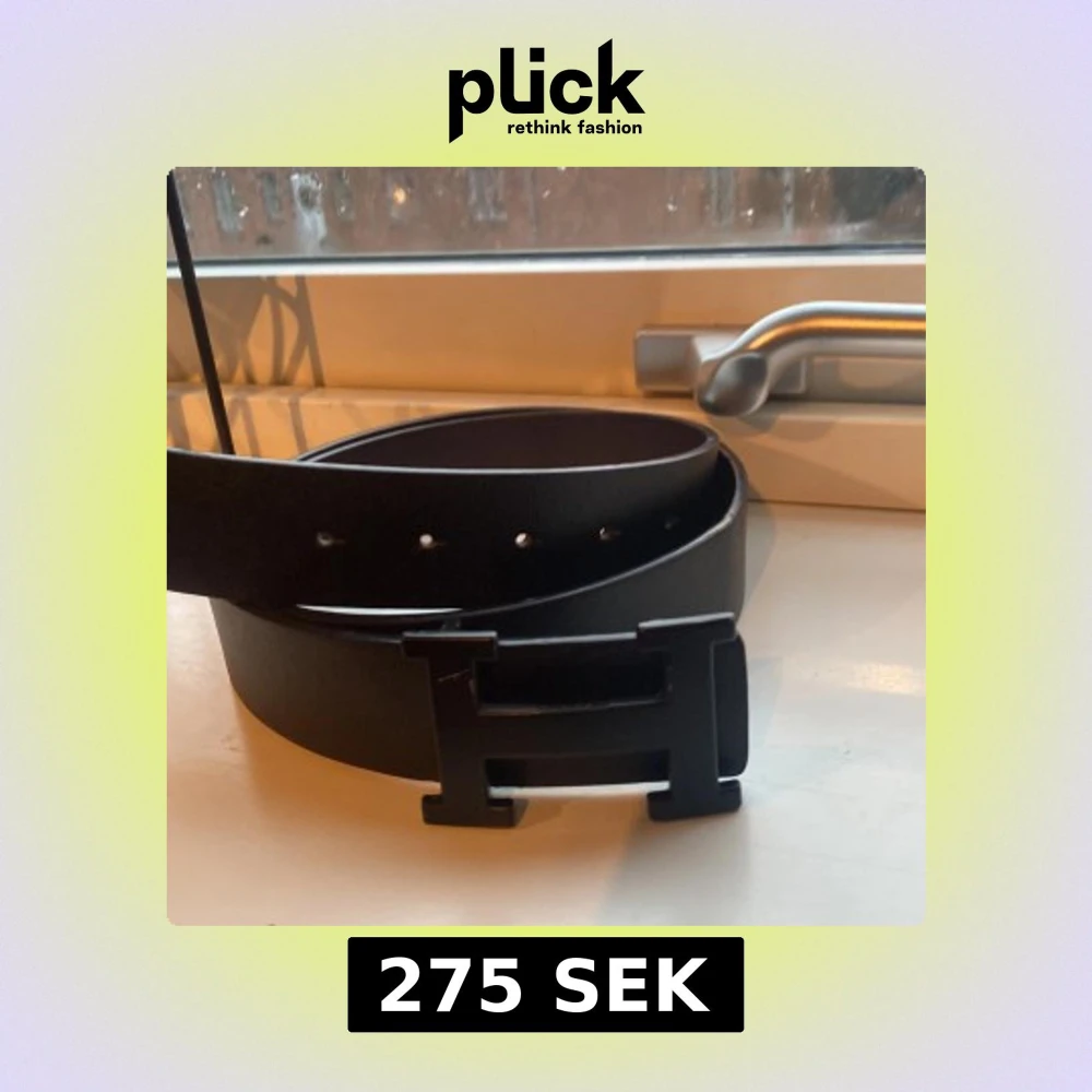Snyggt svart bälte med ett stilrent H-format spänne. Perfekt för att ge en elegant touch till din outfit. Bältet är gjort av skinn och har flera hål för justering.