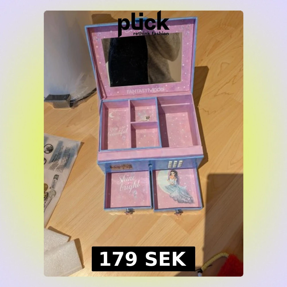En top model låda i jättebra skick som jag hade när jag var liten. Enda skillnaden är att jag satte på ett hästklistermärke men det är bara att ta bort☺️😅