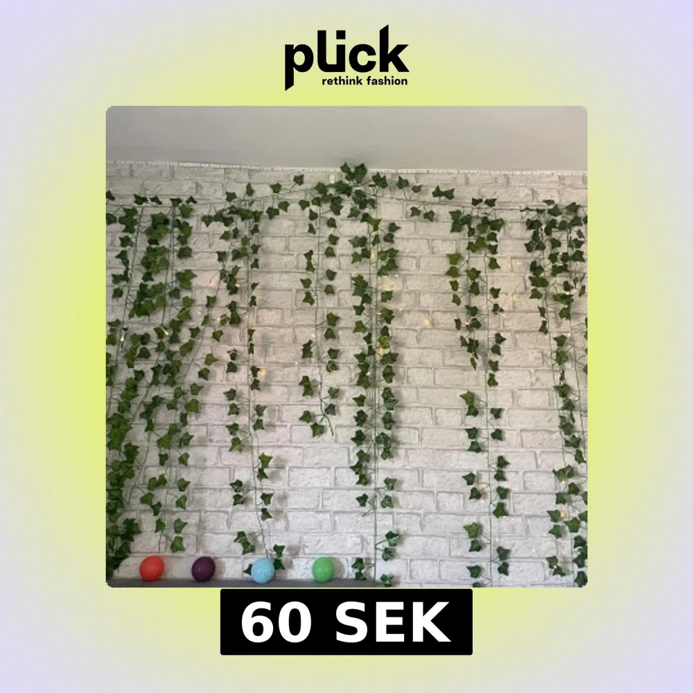 Säljer en dekorativ murgröna i konstmaterial med tillhörande batteridriven ljusslinga. Slingan har små varmvita LED-lampor som ger mysig stämning. Perfekt för att skapa en chill vibe i rummet med gröna blad som hänger ner längs väggen. Det är 12 längder och varje längd är 2,2 meter! Skriv för fler bilder/ frågor 💕