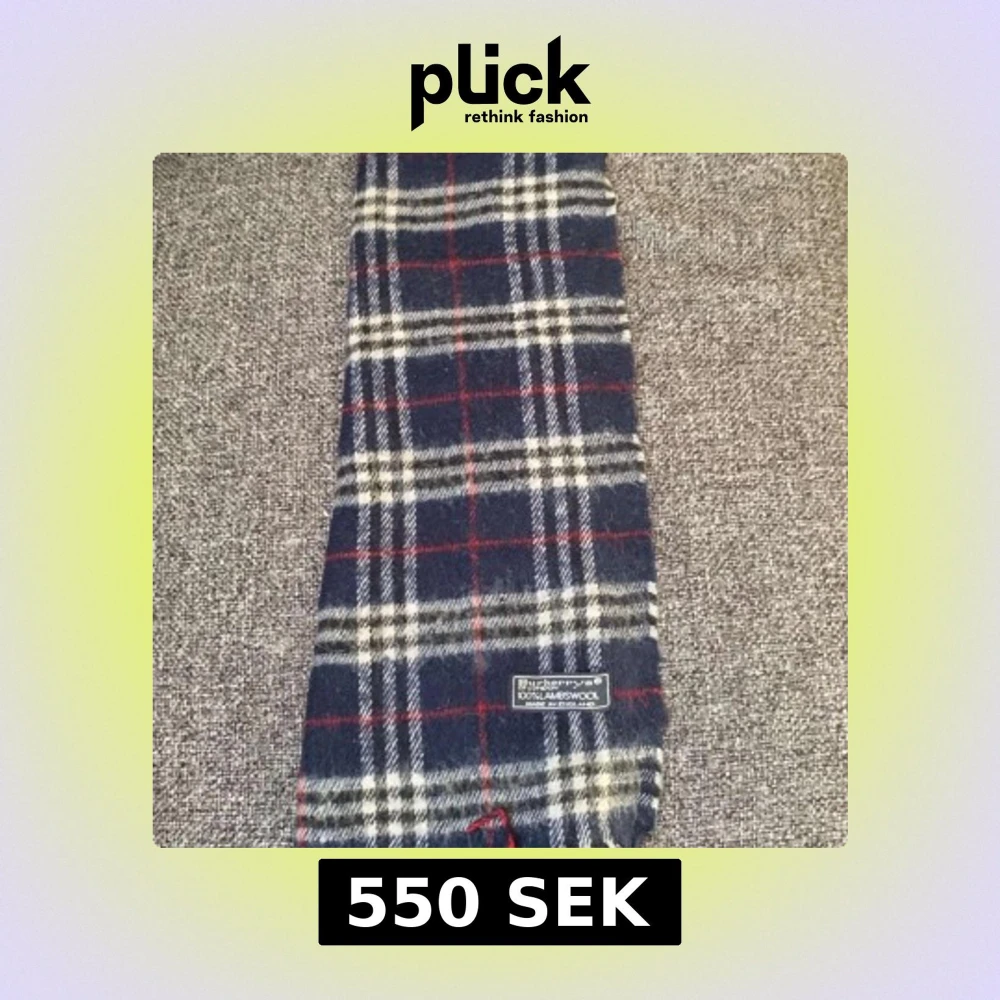 Säljer en rutig halsduk i blått, vitt och rött från burberry . Halsduken är tillverkad i mjuk ull och har en tidlös design som passar perfekt för våren