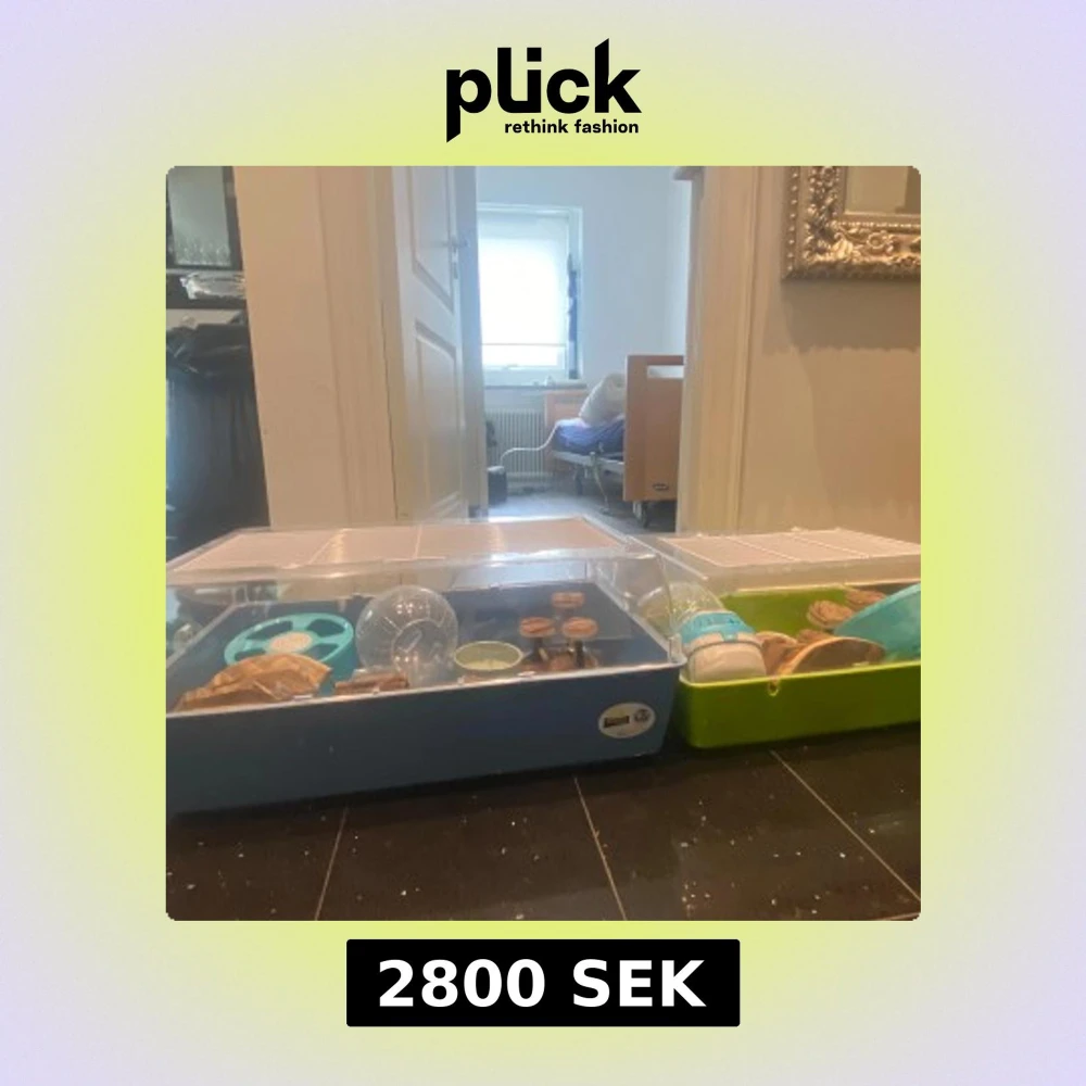 Hej säljer två dvärg hamster burar med saker till hamstern som har varit hemma länge hos mig och som jag behöver få bort så snart som möjligt . Den stora kostar 1500kr och den lila kost kostar 1300