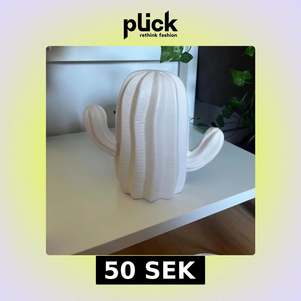 En vit kaktus gjord i keramik. Passar perfekt som en dekoration till vardagsrummet eller sovrummet. Väldigt gott skick då den knappt använts.