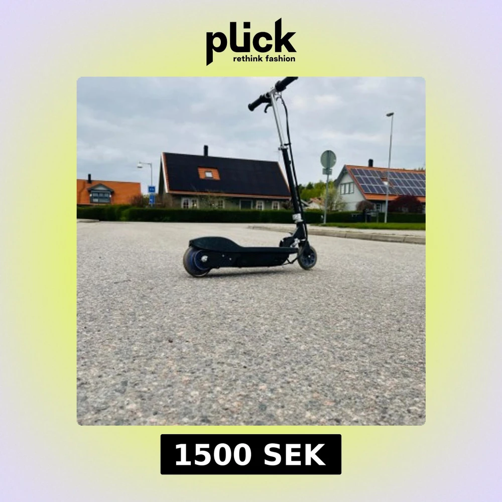 Säljer en svart elscooter från E-ScooterX med robust ram och två hjul. Scootern har en ståplatta med halkskydd och tydlig märkning. Styret är justerbart och det finns en elektrisk motor baktill. Perfekt för smidig transport i stan. Säljer den för 1000kr. Jag har kört i 18 km/h med den när den var fulladdad men jag skulle säga att den vanligtvis går i 12-15 km/h fulladdad.
