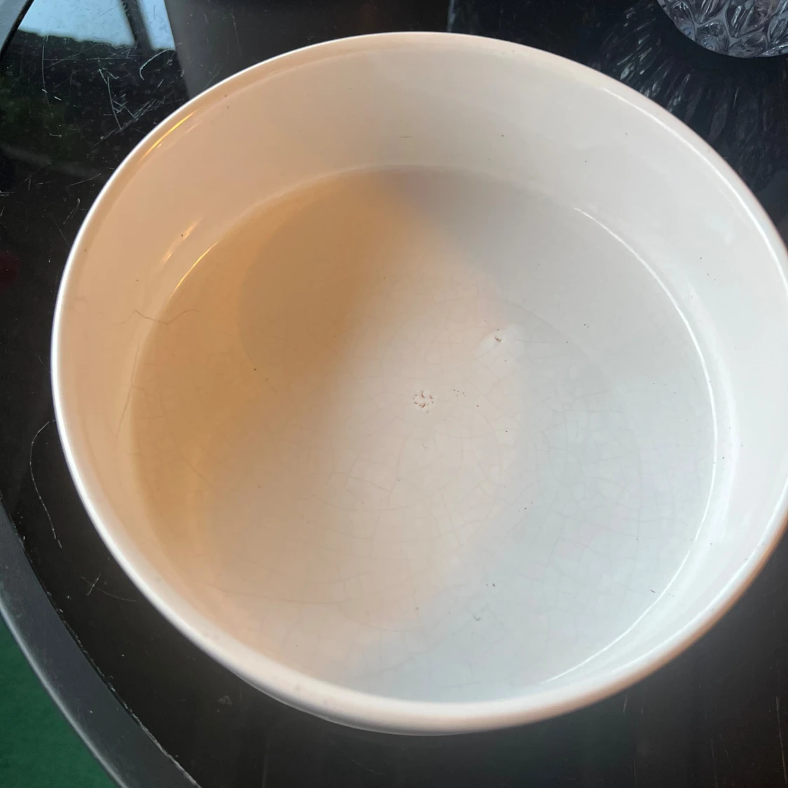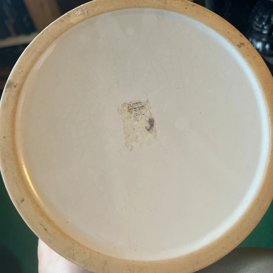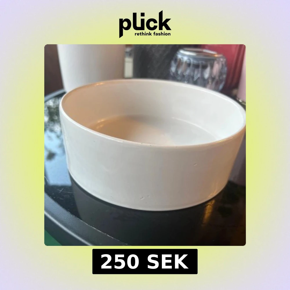 Denna produkt är en vit keramikskål med rund form. Skålen har synliga krackeleringar i glasyren och vissa små märken, vilket tyder på användning och ålder. Passar utmärkt som serveringsskål eller dekoration. Märkning på undersidan är otydlig.